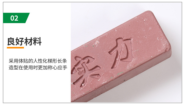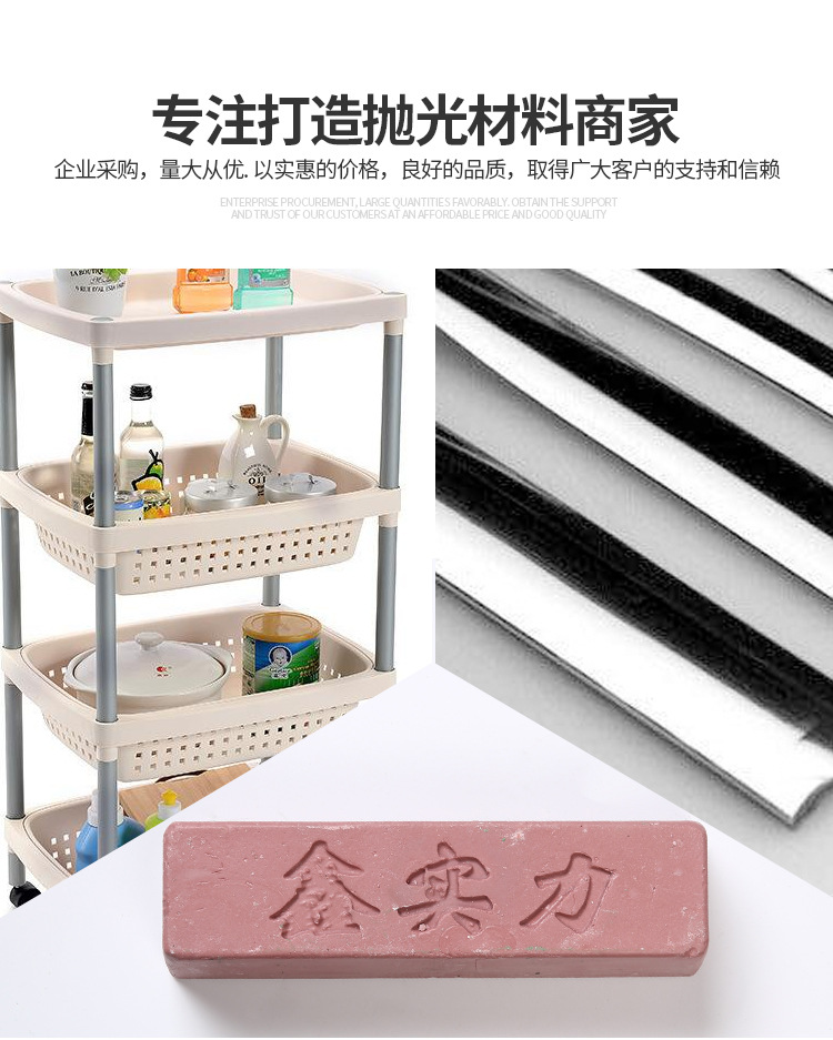 其內(nèi)含豐富有的油脂,因選材講究,更具有超卓的光澤度及切削力,具有相當(dāng)不錯(cuò)拋光效果,拋后紋路光滑細(xì)膩。不會(huì)燒傷工件,一般配合粗布輪粗拋使用,價(jià)格比較實(shí)惠。