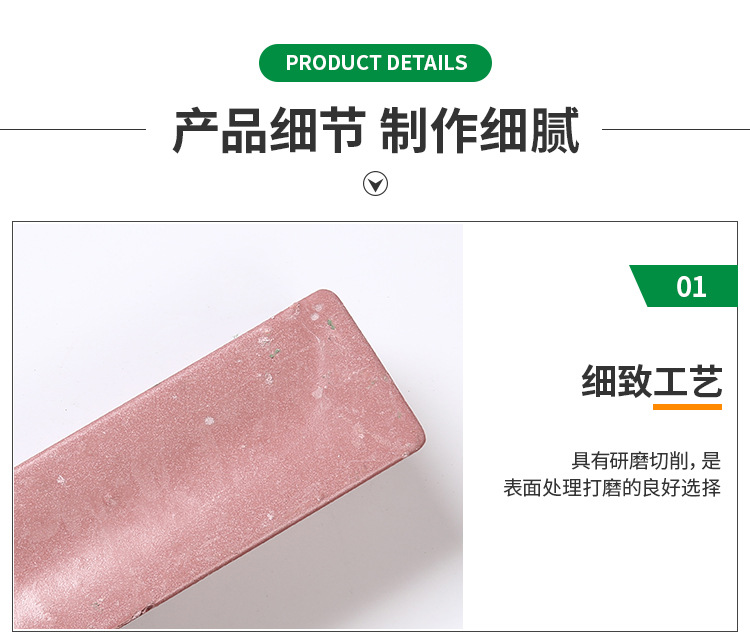 適用于任何金屬和一般非金屬打磨后工序的拋光處理,使用此產(chǎn)品打磨,光澤度好,工件表面不會(huì)留有割痕。通常視乎打磨要求而選擇綠蠟或此產(chǎn)品。