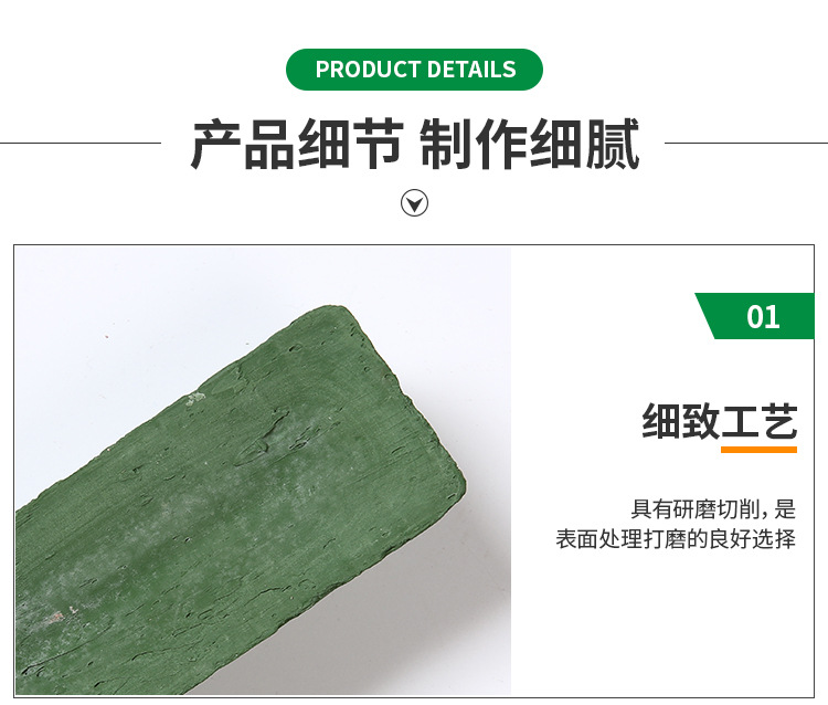 XPRC青臘A-8的一般情況下用不同的顏色表示不同品種的拋光蠟,避免使用時混亂。高含量的磨料可以加速整個拋光過程。這個過程是拋光蠟拋光輪表面移動而使材料變得光滑。