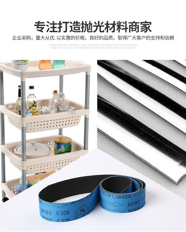 拋光砂帶 各種規(guī)格砂帶 精密砂帶磨削是一種彈性磨削,因而砂帶磨削是一種具有磨削、研磨、拋光多種作用的復合加工工藝,砂帶上的磨粒比砂輪磨粒具有更強的切削能力,所以砂帶磨削的效率非常高,磨削速度穩(wěn)定.